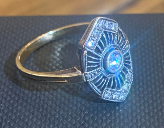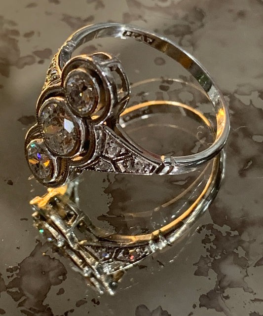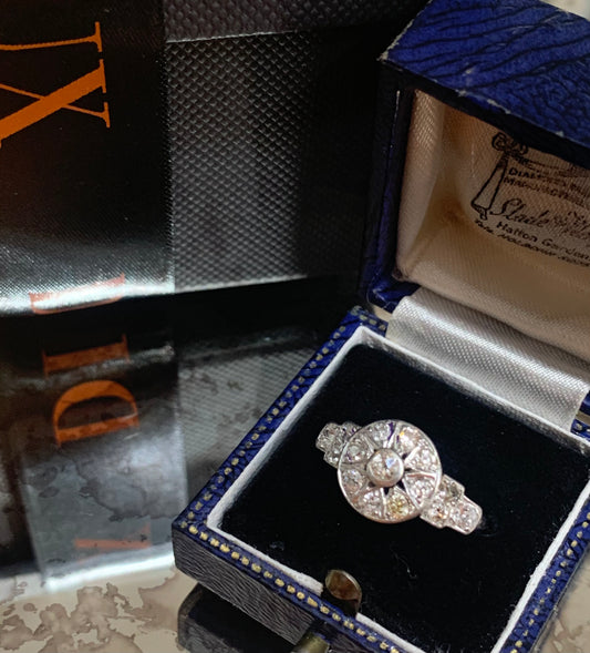 Beautiful Art Deco Old Cut Diamond and Platinum Cluster Ring c1920's - Size: K1/2.