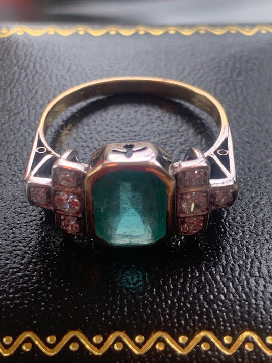 Fabulous Art Deco Emerald and Diamond 18ct Gold Ring - Size R