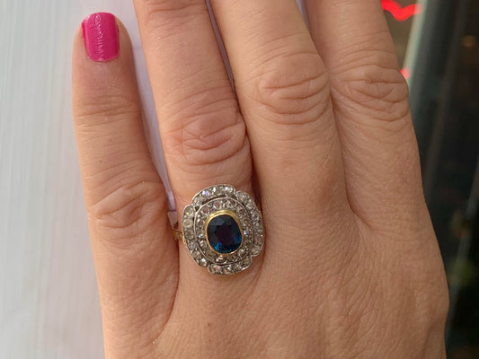 Extremely Fine 18ct Gold Platinum Diamond Sapphire Cluster Art Deco Ring - Size M1/2
