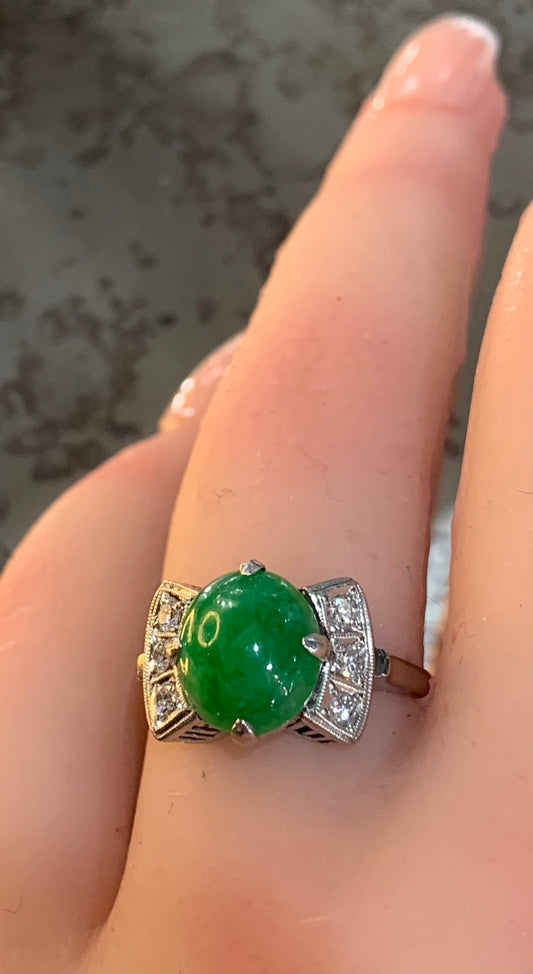 Art Deco Platinum Diamond Jade Ring c1920's - Size M.