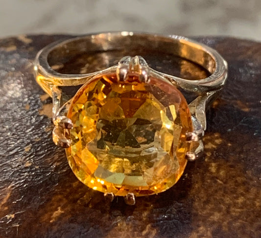 Art Deco Orange Sapphire 6.77ct (synthetic) Solitaire 9ct Gold Ring c1920-30's Size K1/2