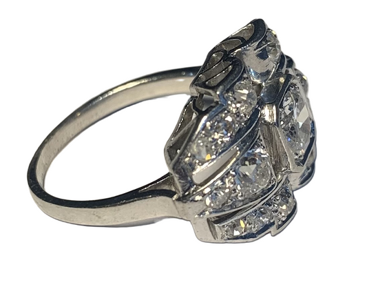 Art Deco 2.1ct Emerald and Diamond Platinum Cluster Ring - Size - M