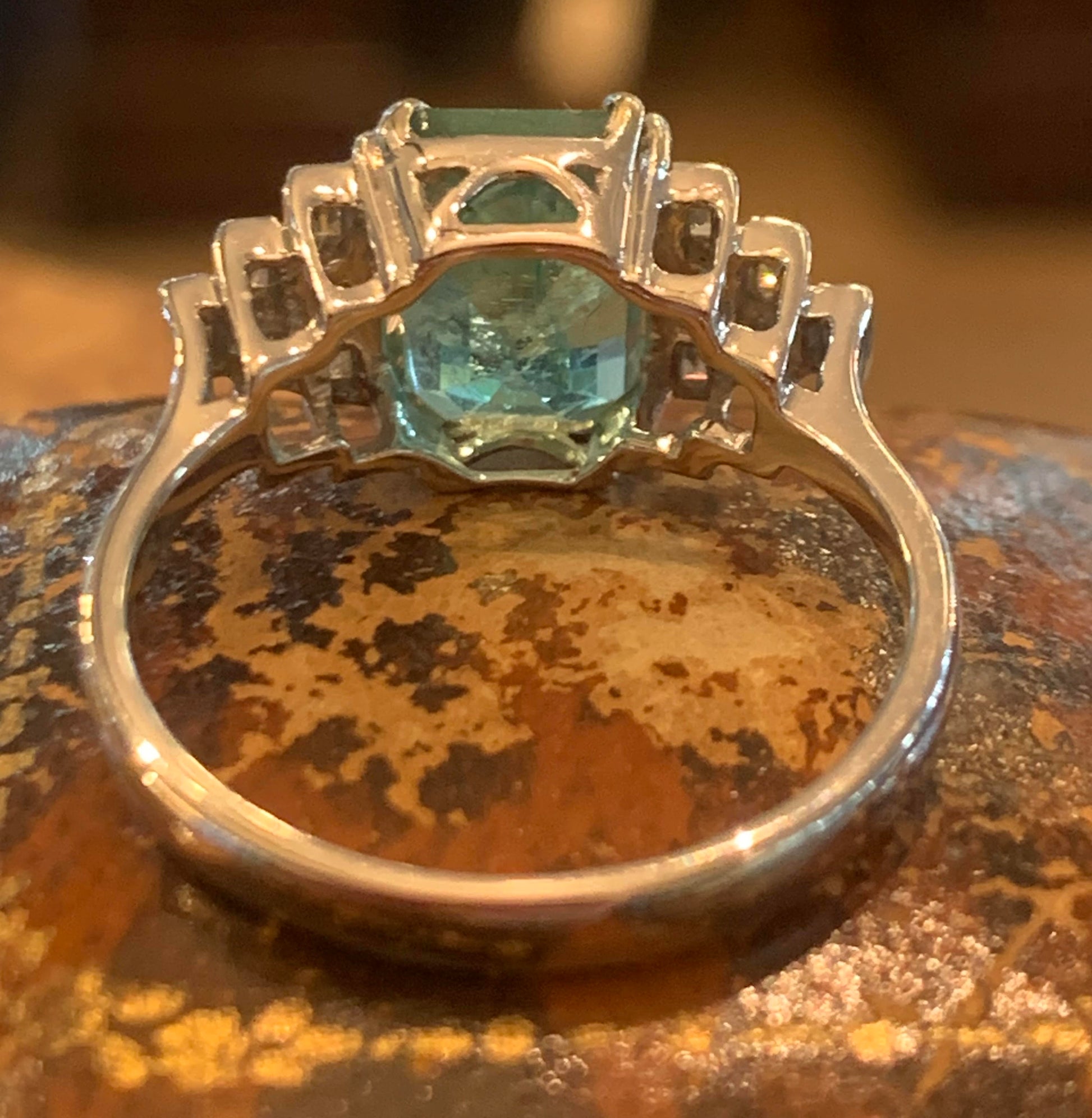 This beautifully crafted Art Deco ring has a stunning approx 2ct emerald to the centre and is flanked by 6 x baguette cut diamonds on either side each approx 0.02cts giving a total diamond carat weight of 0.24 of diamonds. The ring is a dazzling example of the Art Deco period in fine jewellery.
