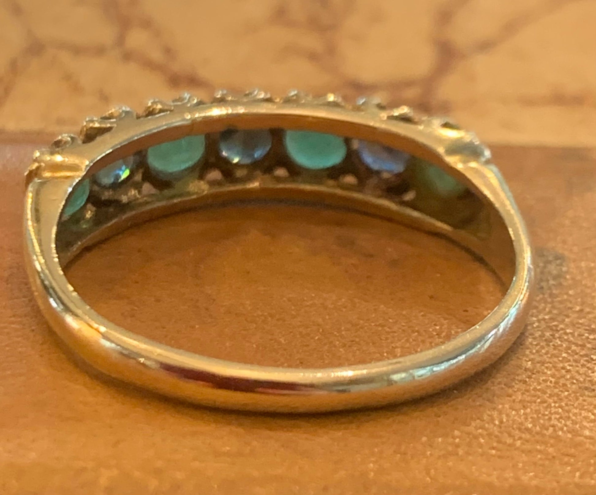 Natural Emerald and Sapphire Victorian style Seven Stone 9ct Gold Ring - Size O