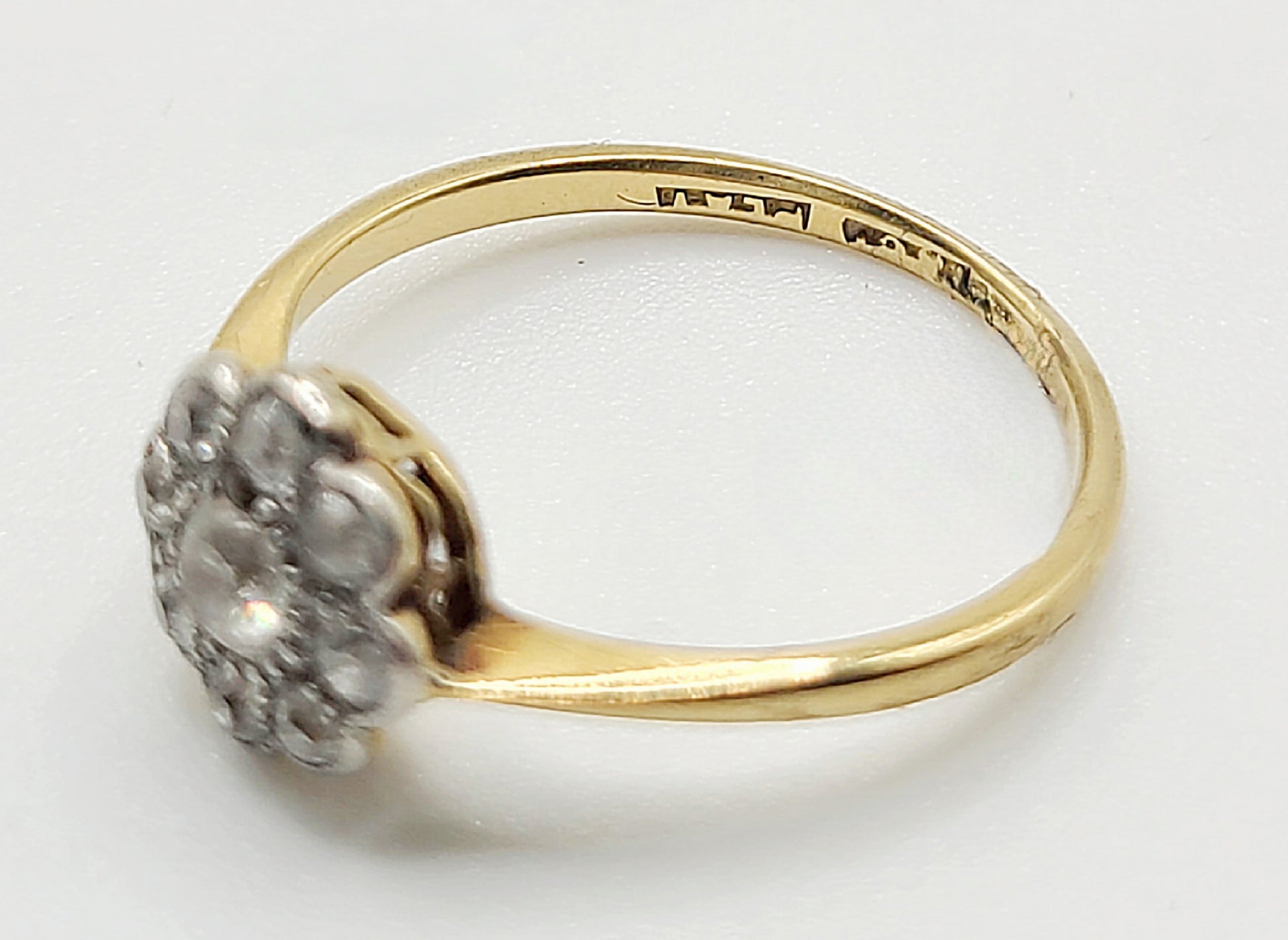 Victorian Platinum Set 18ct Gold Cluster Ring - Size L1/2
