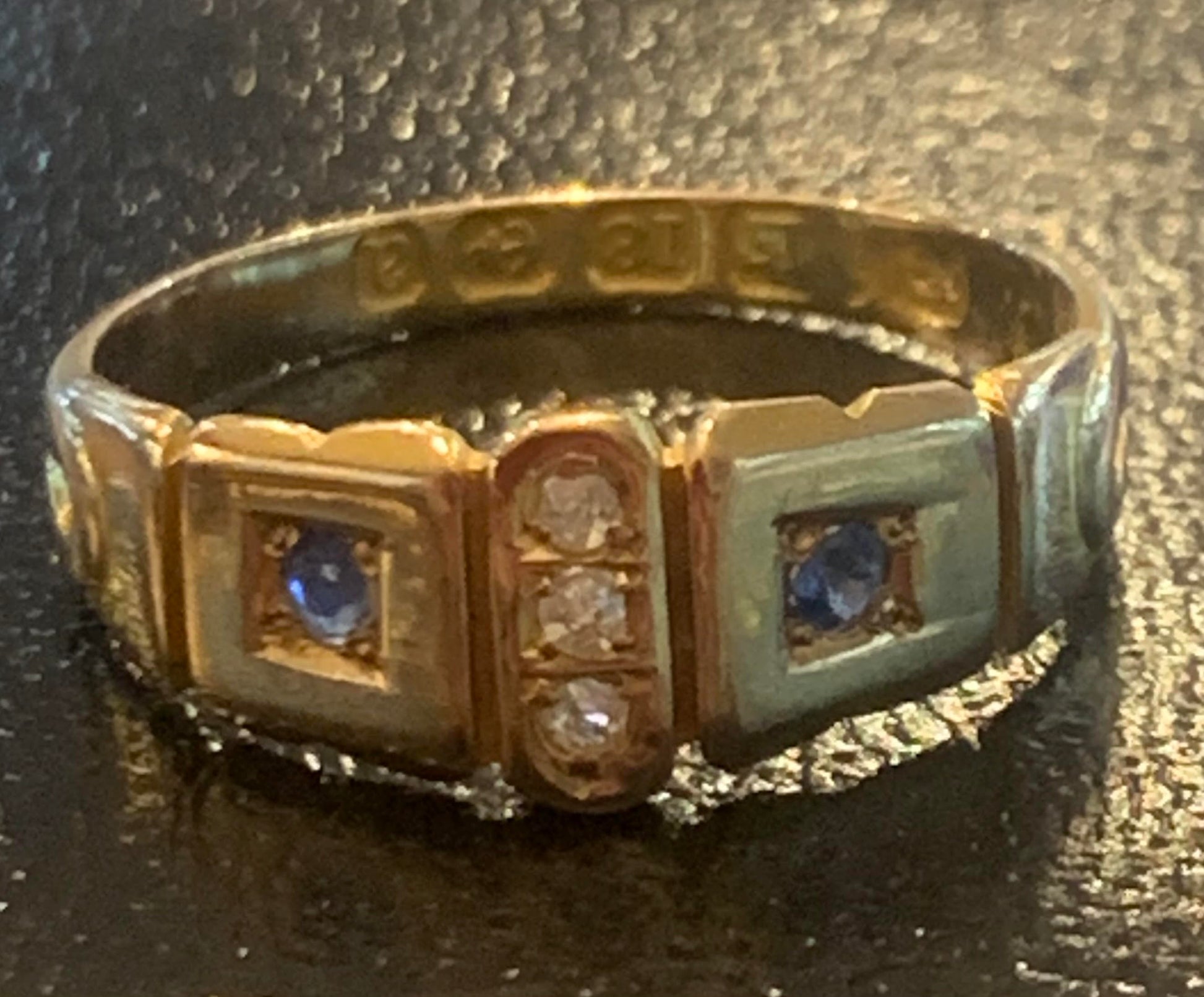 A rather beautiful and unique Victorian sapphire & diamond ring dated Birmingham 1900 set in 18ct yellow gold.